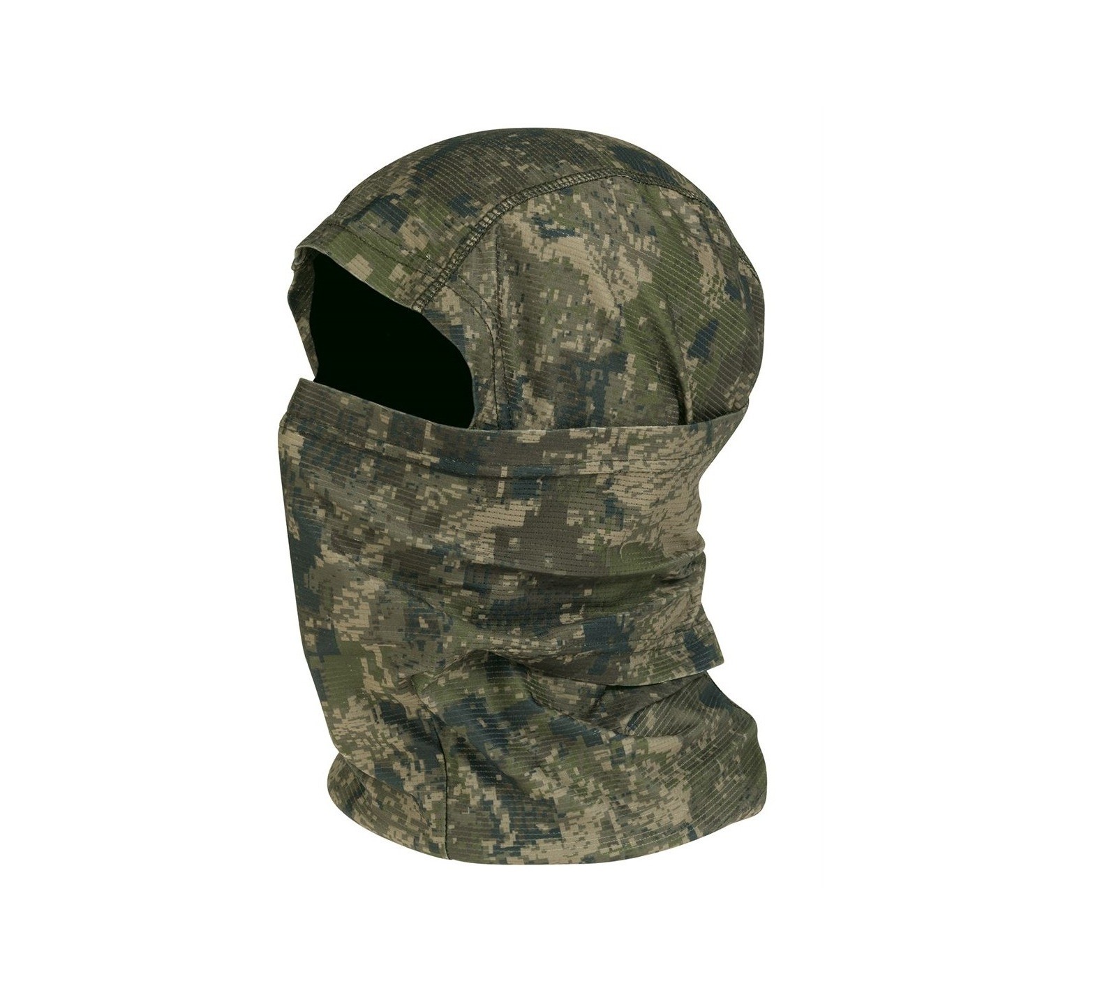 Porté en tour de cou pour les sorties actives, il se transforme en quelques secondes en cagoule couvrant entièrement le visage et la tête pour les affûts