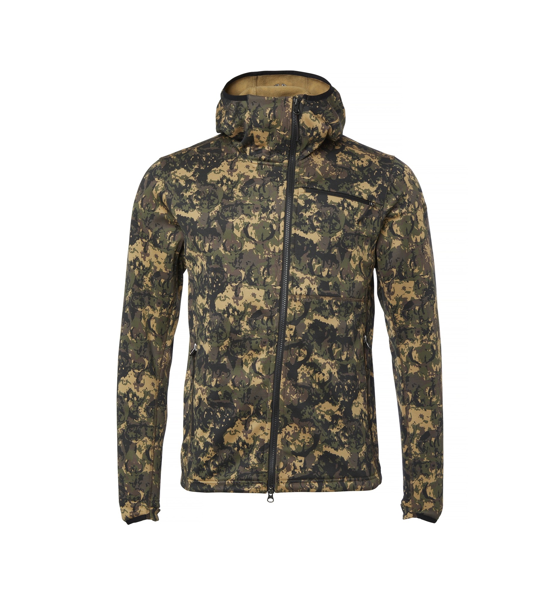 L’intérieur brossé procure une chaleur douce et régulière, parfaitement adaptée aux matinées fraîches et aux longues attentes à l’affût. La veste peut être portée seule par temps tempéré ou utilisée comme couche intermédiaire sous une veste plus protectrice.